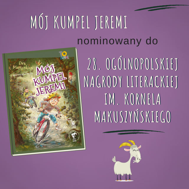 Powieść Mój kumpel Jeremi od Wydawnictwo Literatura z pięknymi ilustracjami Artura Nowickiego znalazła się wśród nominowanych książek w jubileuszowym plebiscycie ZŁOTA DWUDZIESTKA Fundacji ABCXXI – Cała Polska Czyta Dzieciom. To olbrzymie wyróżnienie, za które bardzo dziękuję. Fundacja od 2001 roku wspiera i upowszechnia czytelnictwo wśród dzieci i młodzieży. Tym bardziej cieszę się, że powieść „Mój kumpel Jeremi znalazła swoje miejsce wśród wyróżnionych książek. Możecie oddać na nią głos, co niezmiernie by mnie ucieszyło 😊