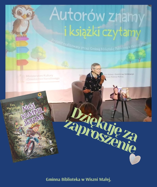 Niezmiernie ucieszyło mnie zaproszenie powieści „Mój kumpel Jeremi” do konkursu czytelniczego przez Gminną Bibliotekę Publiczną w Wiszni Małej.