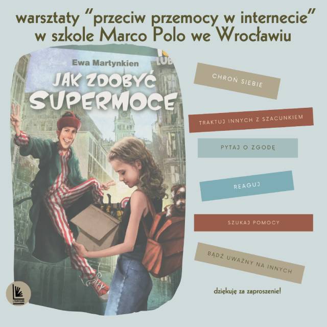Warsztaty” Przeciw przemocy w internecie” podczas Nocy Bibliotek Tym razem na Noc Bibliotek wpadłam do Dobrzycy, gdzie młodzież z Zespołu Szkół Publicznych szykowała się na całonocną zabawę. Tym bardziej dziękuję, że to właśnie ja mogłam zagościć w Gminnej Bibliotece Publicznej, by przeprowadzić warsztaty wokół książki „Jak zdobyć supermoce”. Rozmawialiśmy między innymi o tym, dlaczego coraz …